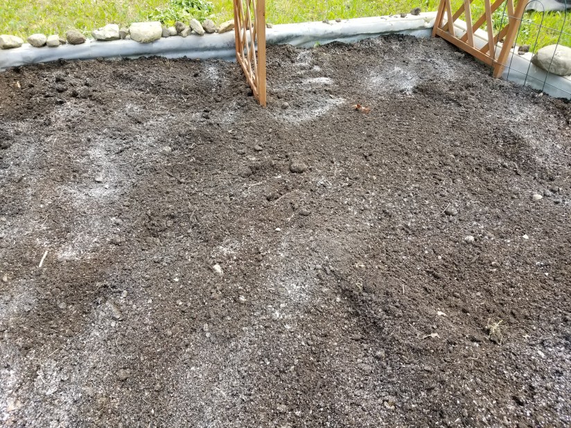 I planted in the morning on a day forecast for light rain. Somewhere along the line, I read or heard about mixing seed with flour to make it easier to sow. This worked out well for me in 2019, so I did the same thing again.