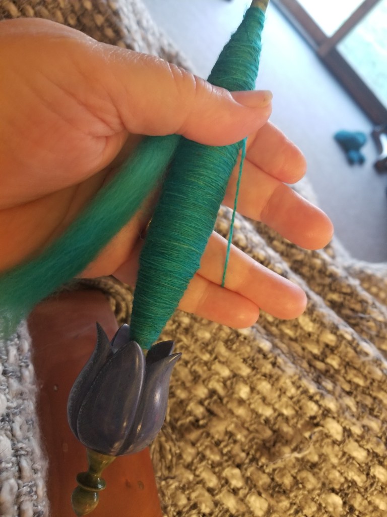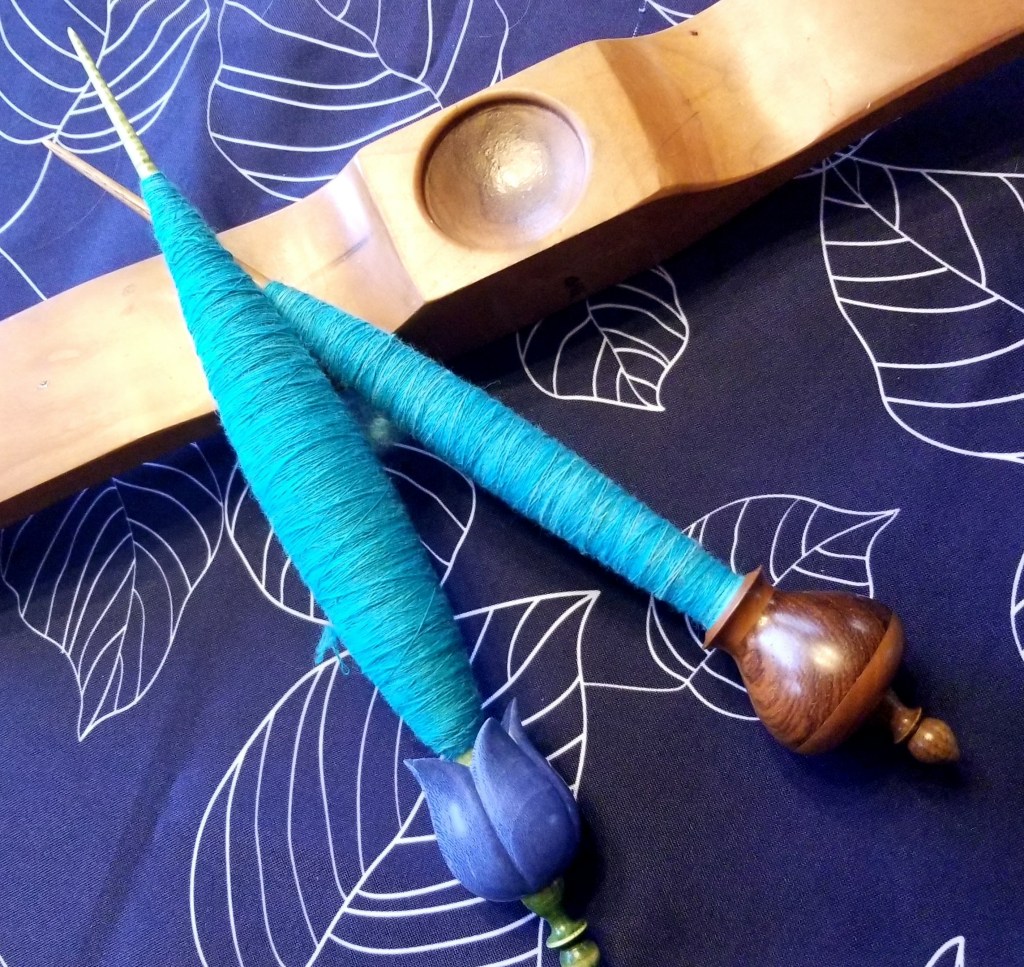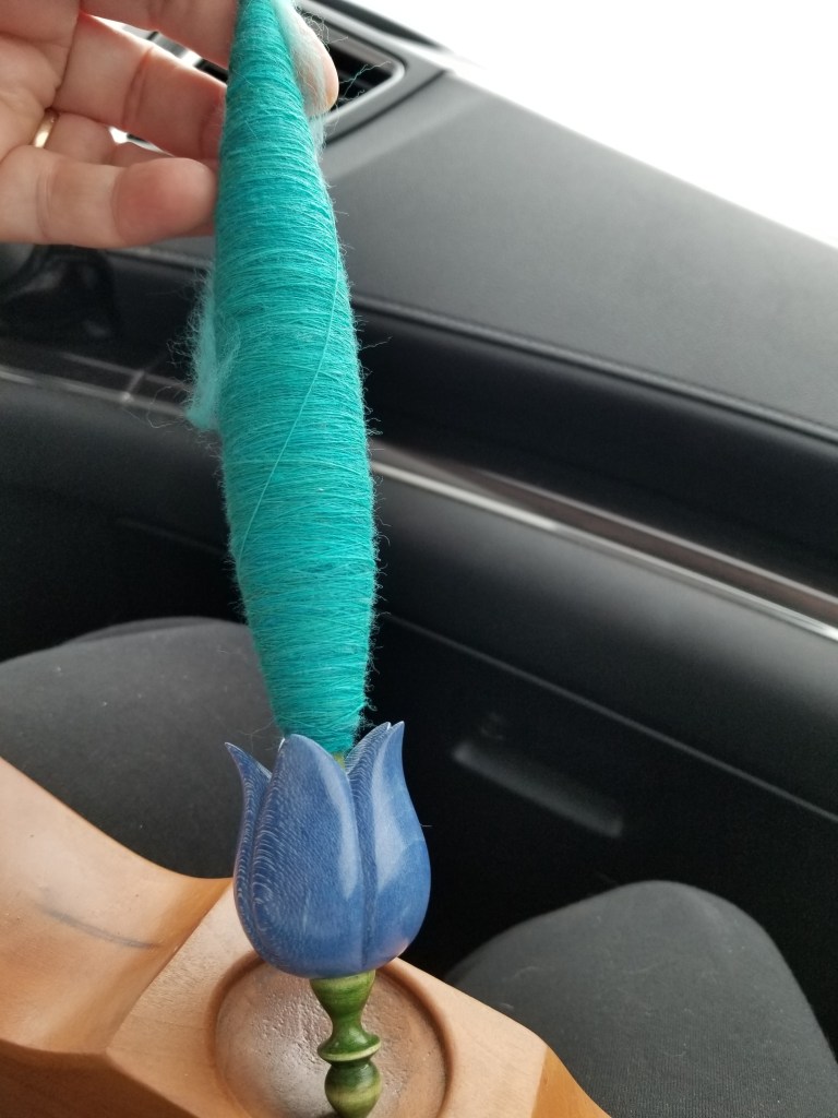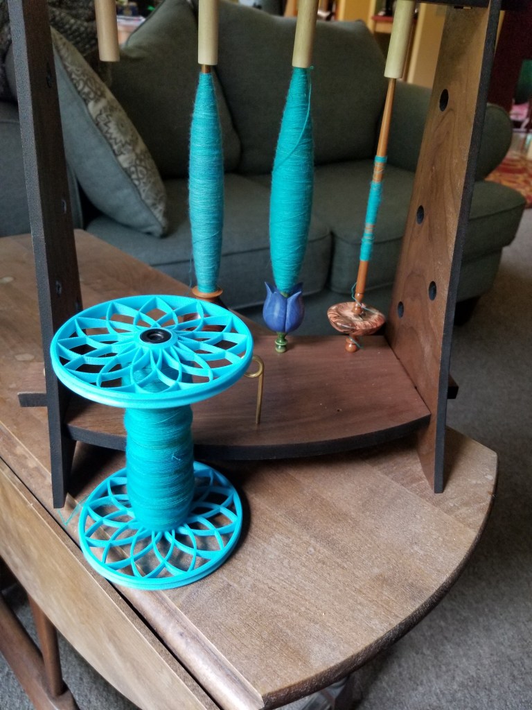 Eventually I had 4 ounces of fiber spun up and stored on spindles, dowels, bobbins, and tp tubes.
