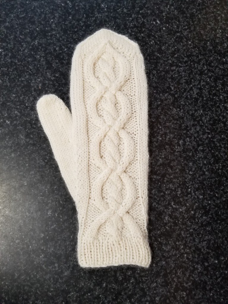 The Lake Effect Hat started as a simple project. Most of the design work had been done when I made the mittens. The hat matches the the mittens so all I had to do was keep the elements the same. I started with a ribbed brim to match the cuff. I set 5 panels with the Lake Effect cable offset by purls and and bordered by a knit column. Essentially, it’s the back of the mitten in hat form.